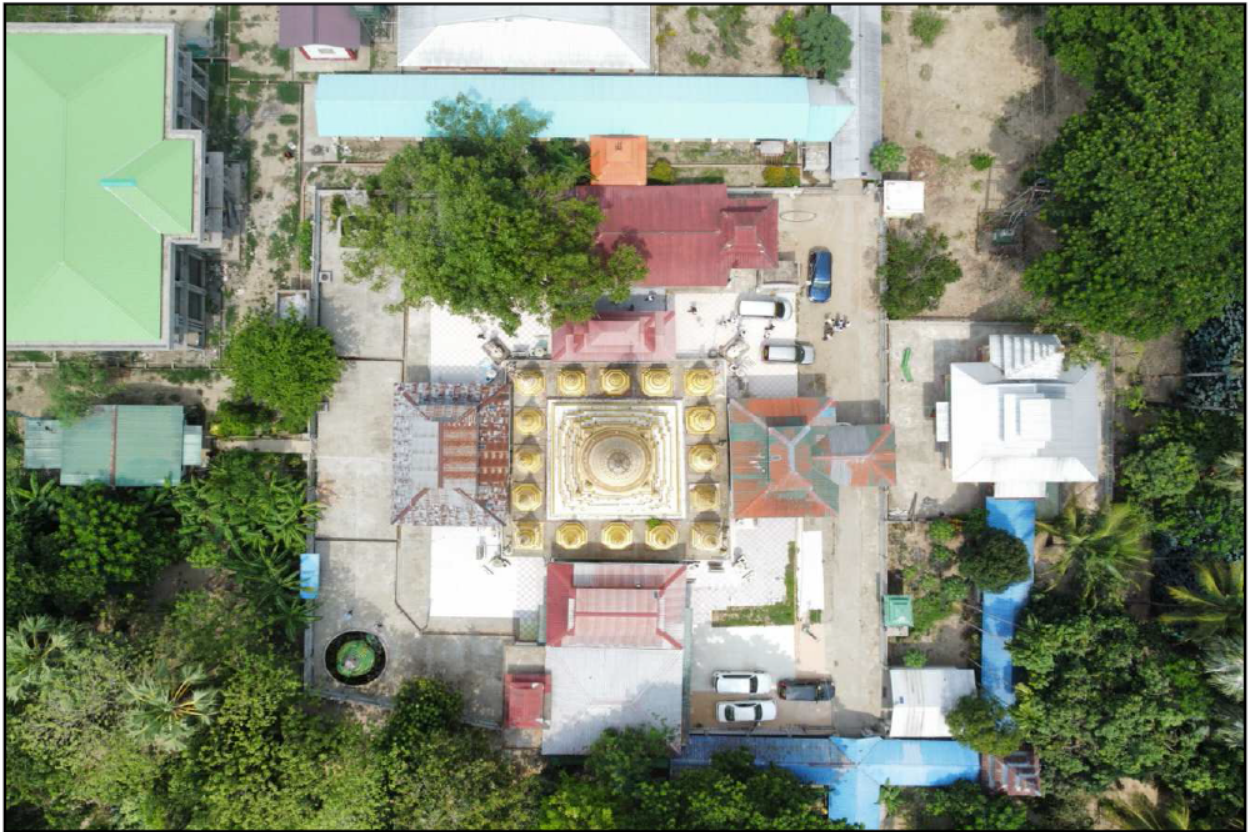 ဘုရားဝတ္တကမြေ (၅) ဧကခန့်ရှိပြီး ရန်ကုန်မြို့မှရေကြောင်းခရီးဖြင့် ၃၆မိုင် အကွာတွင်ရှိပါသည်။ သမလမင်း၏ မိဖုရားရွှေဖရုံမယ်က မိဖုရားကြီးဖြစ်လာခဲ့သော်လည်း ကျဆုံးကွယ်လွန်ခဲ့သော ဆွေတော်မျိုးတော် မွန်လူမျိုးသူရဲကောင်းများကိုလွမ်းဆွတ်သတိရသောအားဖြင့် သေဆုံး၊ကွယ်လွန်၊ ကျဆုံး သူများအတွက်ရည်စူး၍ အထိမ်းအမှတ်နေရာများတွင် ဘုရားစေတီများတည်ထား ကိုးကွယ် လိုကြောင်း သမလမင်းကြီးအားလျှောက်တင်ရာ မိဖုရားကြီးဆန္ဒအတိုင်းခွင့်ပြုတော်မူသဖြင့် ပထမဦးစွာ ခရမ်းမြို့အနီးရှိ မင်္ဂလာကန်တော်ရှိရာအရပ်တွင် စစ်သူကြီးဖိုးထူး နှင့် အထိန်းတော်မအေးပု ဆွေတော်မျိုးတော်အကြီးအကဲသူရဲကောင်းများအား လွမ်းဆွတ်တမ်းတသည့်အနေဖြင့် သက္ကရာဇ် (၁၀၉) ခုနှစ်တွင် ဆွေတော်မျိုးတော်များ၏ လက်ဝတ်ရတနာပစ္စည်းများကို ဌာပနာ ပြီး ဉာဏ်တော် ၁၈ တောင် ရှိသော ရဲမွန်စေတီကို တည်ထားခဲ့ပါသည်။ မွန်ဘာသာအရ ရဲစွမ်းသတ္တိရှိသော မွန်လူမျိုး၊ ဆွေမျိုးစုဟု အဓိပ္ပာယ်ရသည်။ စေတီတော်တည်ရာတွင် အသုံး ပြုခဲ့သောကန်မင်္ဂလာမှာ စေတီတော်၏ အနောက်ဖက် ရင်ပြင်အနီးတွင် ယနေ့တိုင်တည်ရှိနေဆဲဖြစ်ပါသည်။