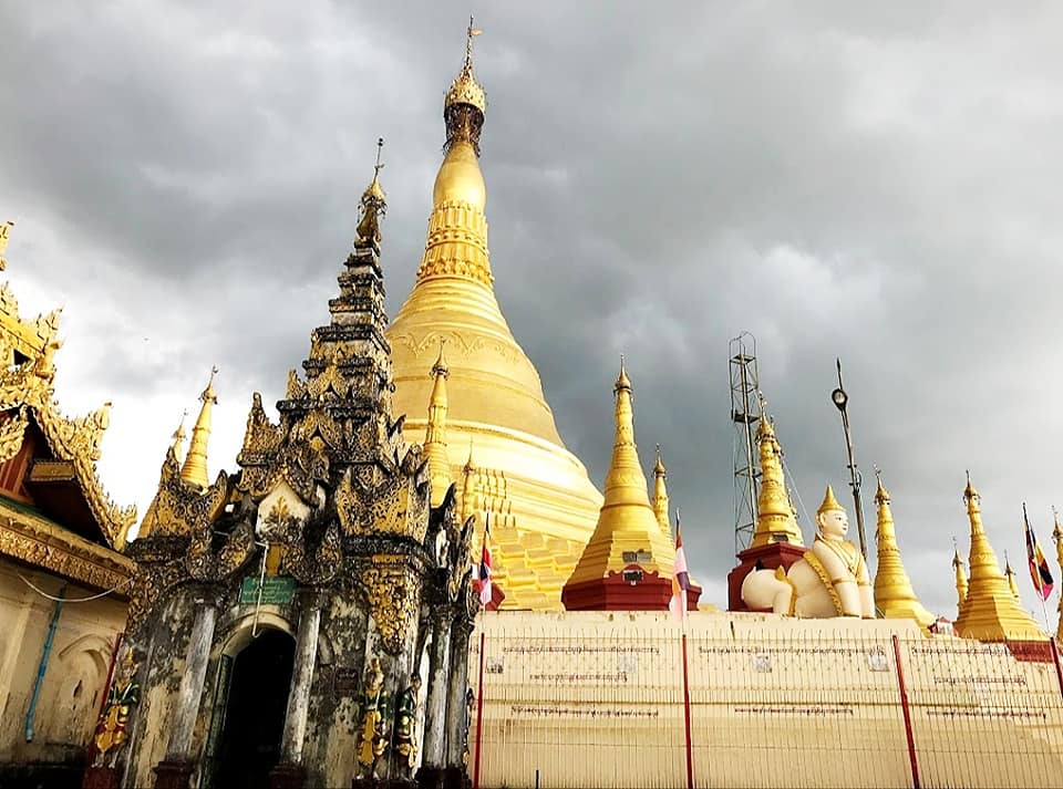စေတီတော်မြတ်ကြီး၏ တနင်္ဂနွေထောင့်တွင် ရှေးမြန်မာမင်းများ၊ စစ်သူကြီးများ ဆုတောင်း အဓိဋ္ဌာန် ပြုလုပ်ရာ အောင်မြေတည်ရှိသည်။ စေတီတော်ကြီး၏အရှေ့တောင်ထောင့်တွင် ဟံသာဝတီဘုရင် ဘုရင့်နောင်ကျော်ထင်အနော်ရထာ လှူဒါန်းခဲ့သောဆင်ခံကျောက်ထီးကိုတွေ့နိုင်ပါသည်။ စေတီတော် ကြီးသည် ၁၂၉၂ ခုနှစ်တွင် ငလျင်ဒဏ်ခံရပြီး ငှက်ပျောဖူးတော်ပြိုကျမြေခခဲ့ရသည်။ ပြိုကျခဲ့သော ငှက်ပျောဖူးကို မဖြိုမဖျက်စေဘဲ၊ ငှက်ပျောဖူးပုံအရံစေတီအဖြစ် ၁၃၀၁ ခုနှစ်တွင် အရှေ့တောင် အထက် ပစ္စယာတွင် တည်ထားကာမြေခခဲ့သည့်ထီးတော်ကြီးကိုအရံစေတီအဖြစ် အရှေ့မြောက်ထောင့်တွင် ထီးတော်ပုံစေတီတော်ကို တည်ထား ခဲ့သည်။